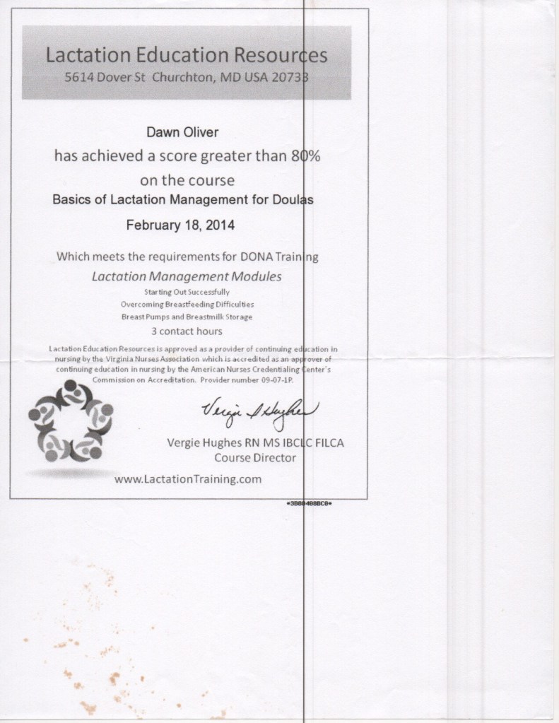 Dawn Oliver CDI(TCA) Compassionate Care Doula Services provides ethical, superior, compassionate services. Professionally trained by Traditional Childbirth Arts(TCA). I also became Traditional Childbirth Arts Instructor. I have worked in a hospital setting as a certified CNA and Medical Assistant for 20 yrs. I have taken several courses and workshops to enhance my doula training. As a Certified Birth and Postpartum Doula, I have supported approx 200 families. Now, my main focus is supporting families as a Postpartum Doula, Sleep trainer, and a Childbirth Educator. I offer Evidence Based Birth ® classes, as a Evidence Based Birth® Child Birth Educator, and a Placenta Encapsulation.