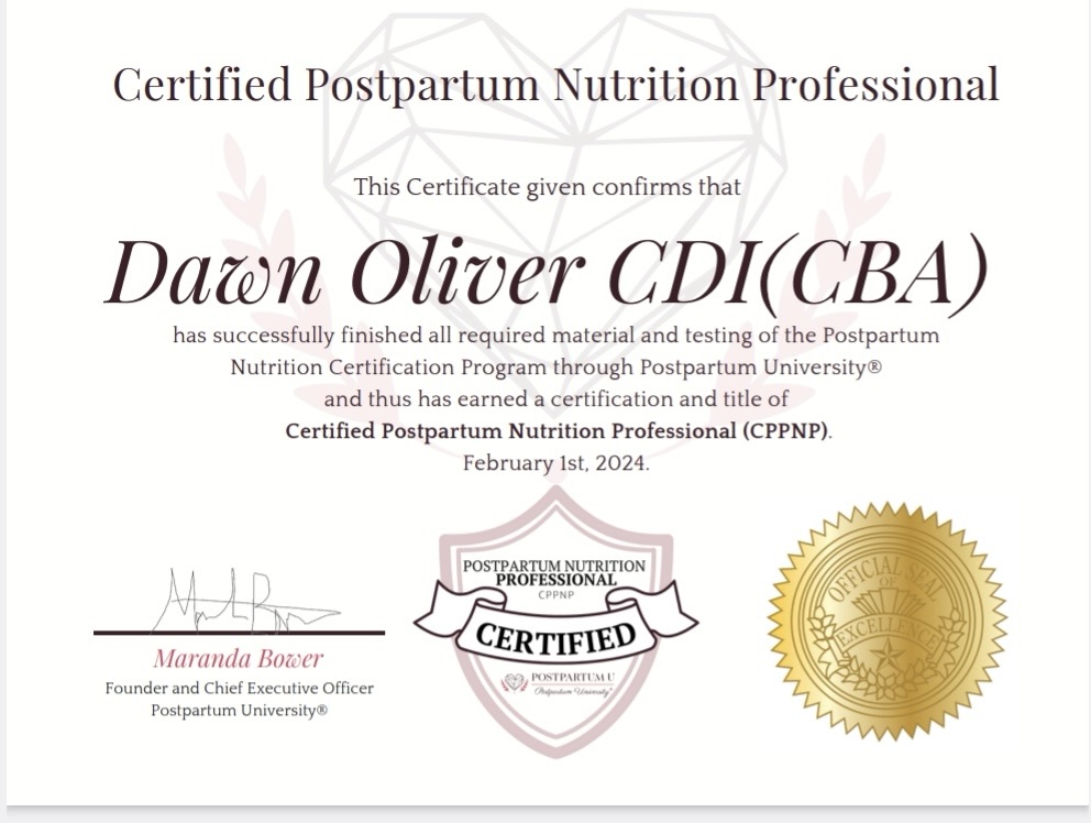 Dawn Oliver CDI(TCBA) owner/director of Compassionate Care Doula Services and Birth &Beyond Nesting , provides ethical, superior, compassionate services. Professionally trained by Traditional Childbirth Arts(TCBA). I also became Traditional Childbirth Arts Instructor. I have worked in a hospital setting as a certified CNA and Medical Assistant for 20 yrs. I have taken several courses and workshops to enhance my doula training. As a Certified Birth and Postpartum Doula, I have supported approx 200 families. Now, my main focus is supporting families as a Postpartum Doula, Sleep trainer, and a Childbirth Educator. I offer Evidence Based Birth ® classes, as a Evidence Based Birth® Child Birth Educator, and a Placenta Encapsulation.