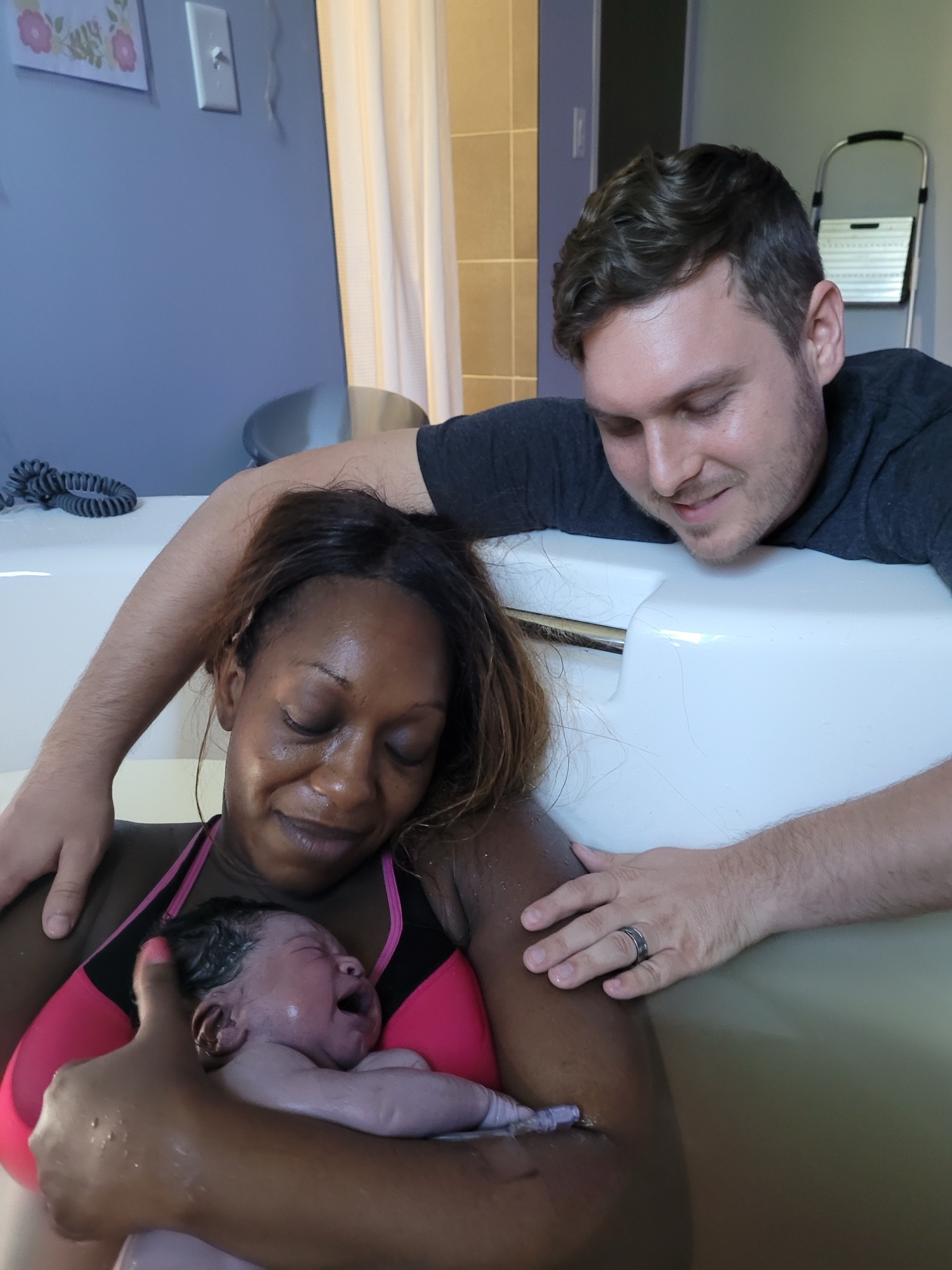 Looking back I’m amazed at how easily she adapted to me and my family as well as with the midwives attending the birth. Her calm demeanor and obvious expertise helped my labor progress quickly. Every time I would stray from being calm, all I heard was her calm voice setting me back on track. She was so helpful in keeping me physically comfortable too with masssage and warmth when needed.